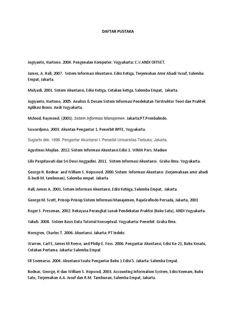 Judul makalah (ditulis didalam tanda petik). Setelah mempelajari tentang pengertian dan fungsi daftar pustaka, di bawah ini kami juga menyertakan informasi penting seputar cara penulisan daftar pustaka baik untuk skripsi manajemen atau judul skripsi lainnya, tesis, disertasi, maupun makalah. Jurnal program studi teknik informatika. Daftar pustaka a hall, james.2011.sistem informasi akuntansi, edisi 4, jakarta:salemba empat abdullah, thamrin. Dan daftar pustaka itu merupakan sebuah tulisan yang wajib di buat dan wajib di cantumkan di dalam sebuah karya tulis kita.