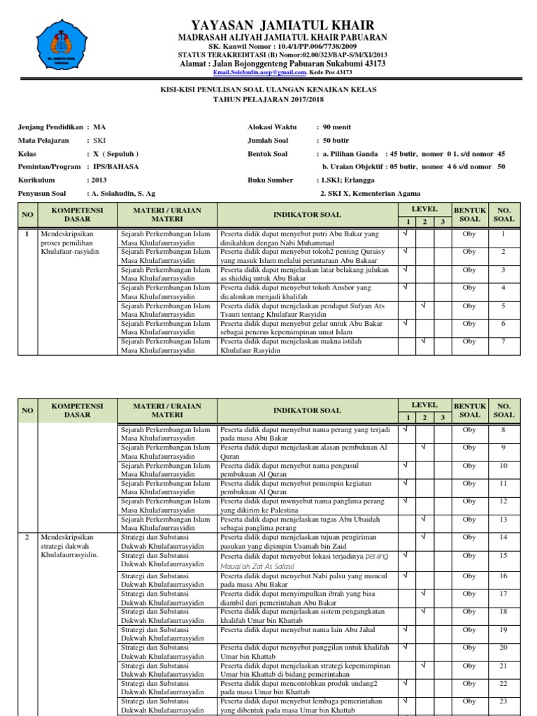 Kisi-Kisi Soal Ski Kelas 3 Mi Semester Genap / Kisi Kisi Penilaian Tengah Semester Genap Madrasah Aliyah Ma Ma Arif Nurul Huda Patimuan / 25 pg, 5 uraian level nomor bentuk no.